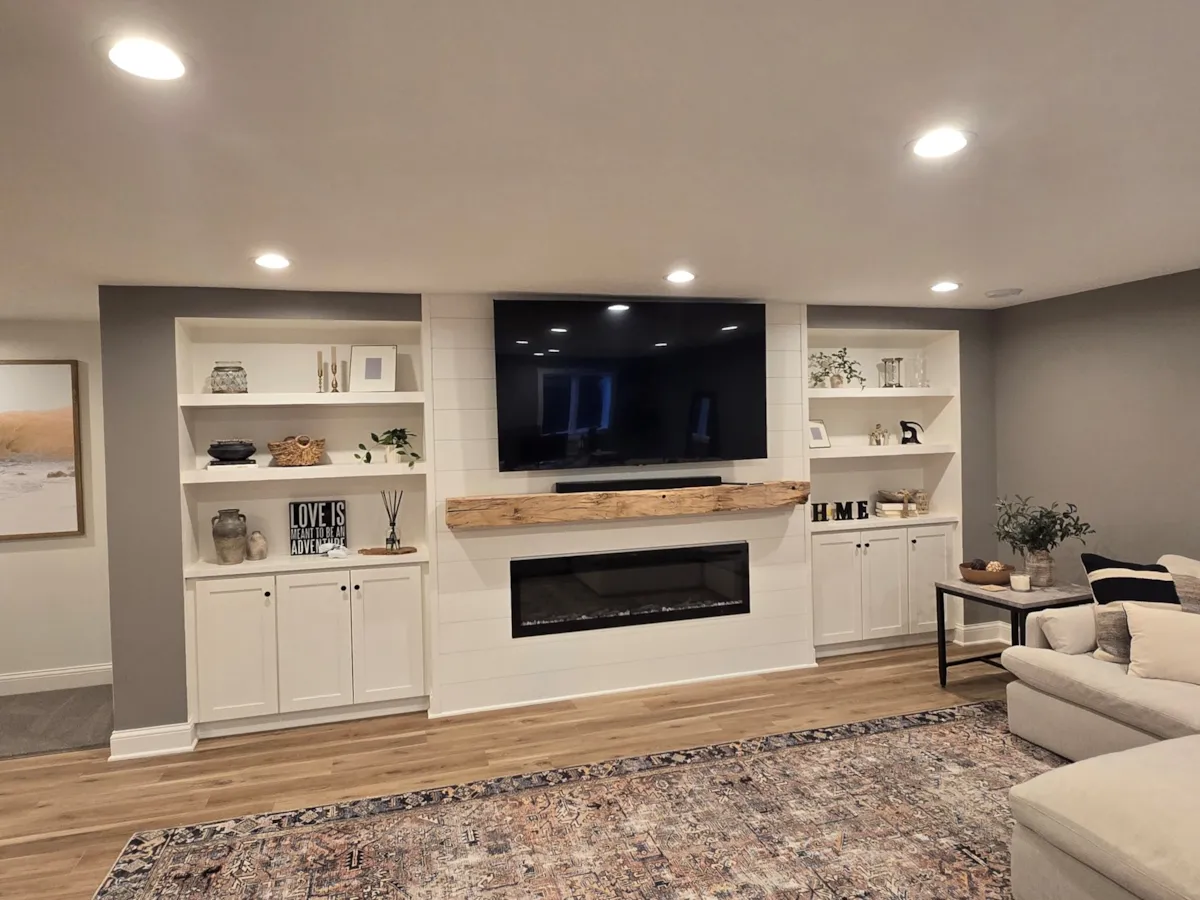 We believe in using high-quality materials that stand up to the unique needs of a lower level. We typically work with granite and quartz for custom bars and kitchenettes. For flooring, we often use LVP (Luxury Vinyl Plank) for its durability and moisture resistance, finished off with high-end Bayer Built or Heritage trim.